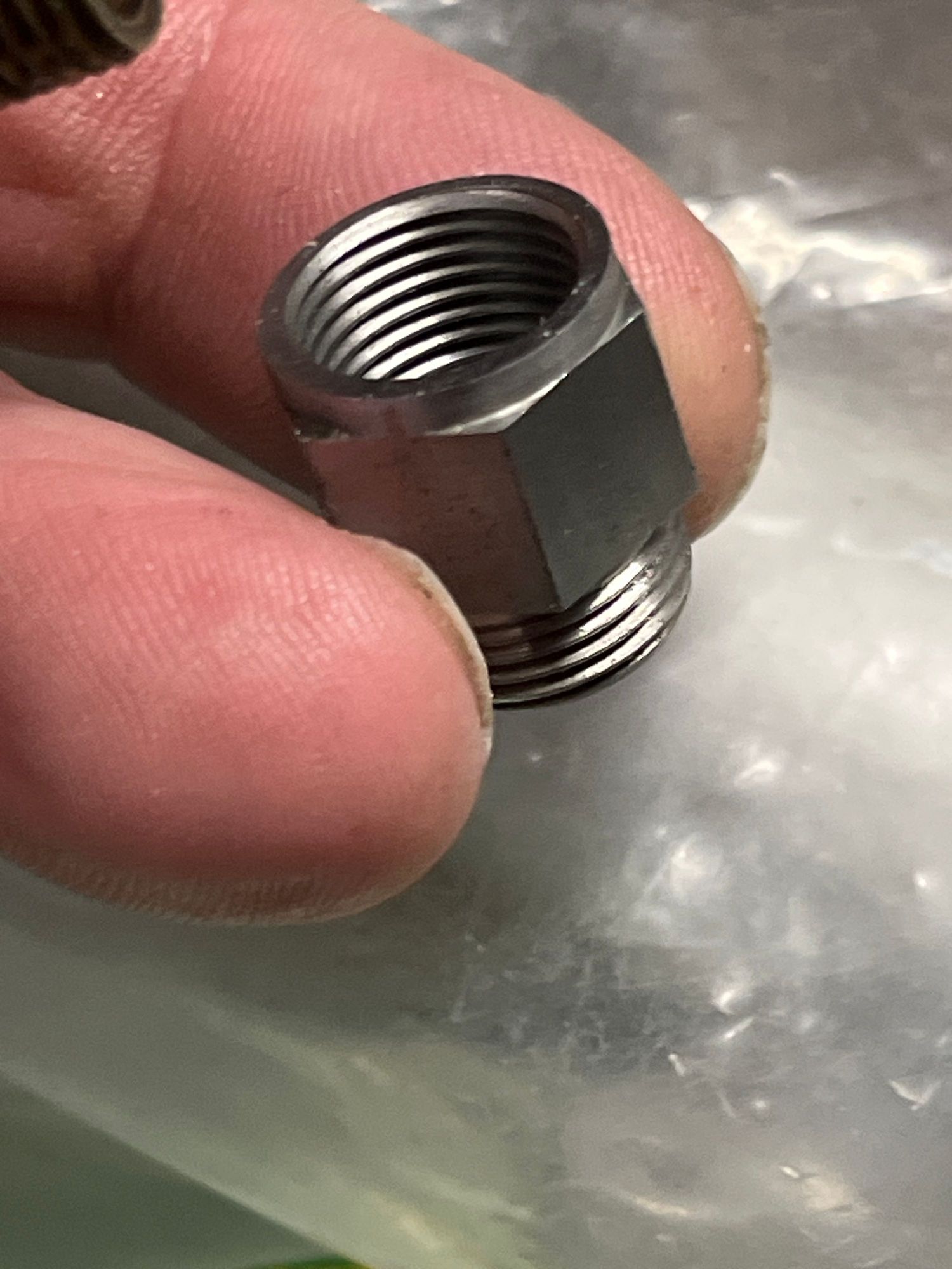 12mm female on the other. Adds one muffler thread length to the pipe.